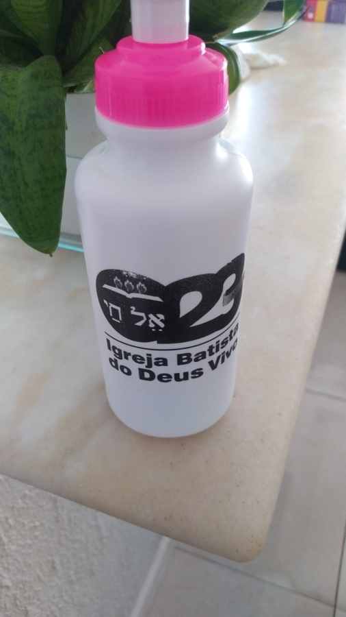 Garrafa de água Squeezer 450ml, branca com cores de tampas variadas. (OBS: JÁ COM SUA ARTE PRONTA)